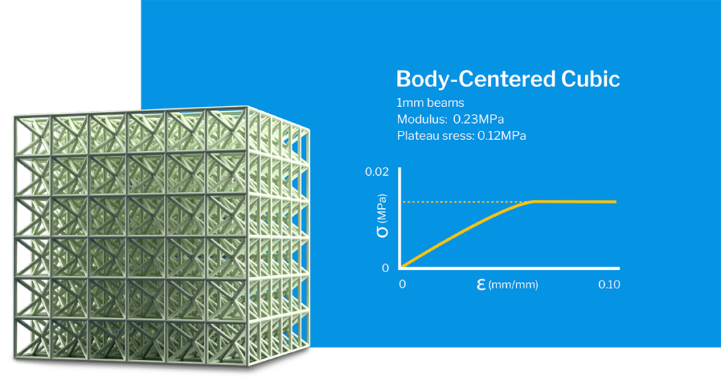 Energy dissipation: Because the BCC lattice combines both an elastic and a buckling response, it is possible to adjust energy storage and dissipation to serve specific applications.