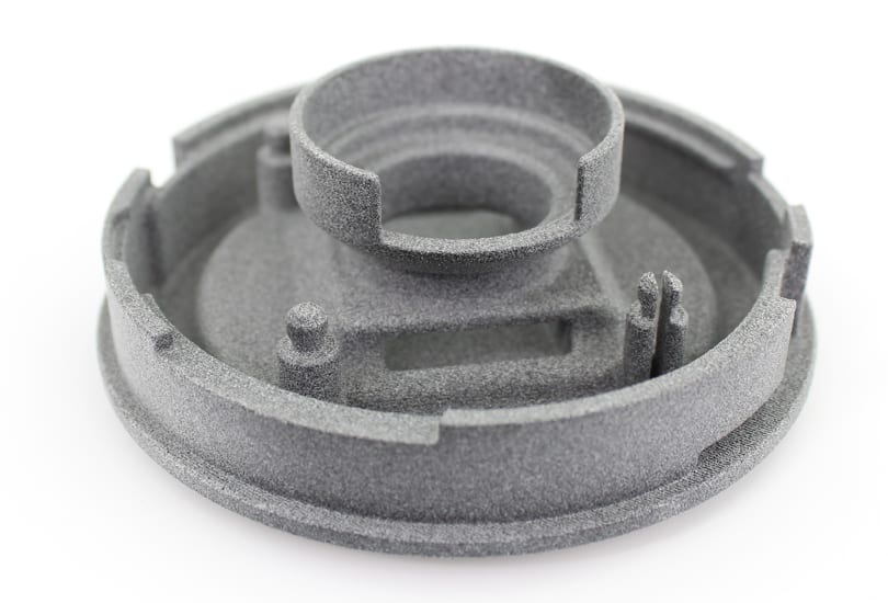 Post-processing starts with excess powder removal. Operators will blast the final part with air or media before it can undergo surfacing finishing. HP® PA 12 comes in a standard gray color, however, if desired, customers can put their parts through a dye process to change the color to black. You can also paint parts with HP® PA 12 with any color you need.